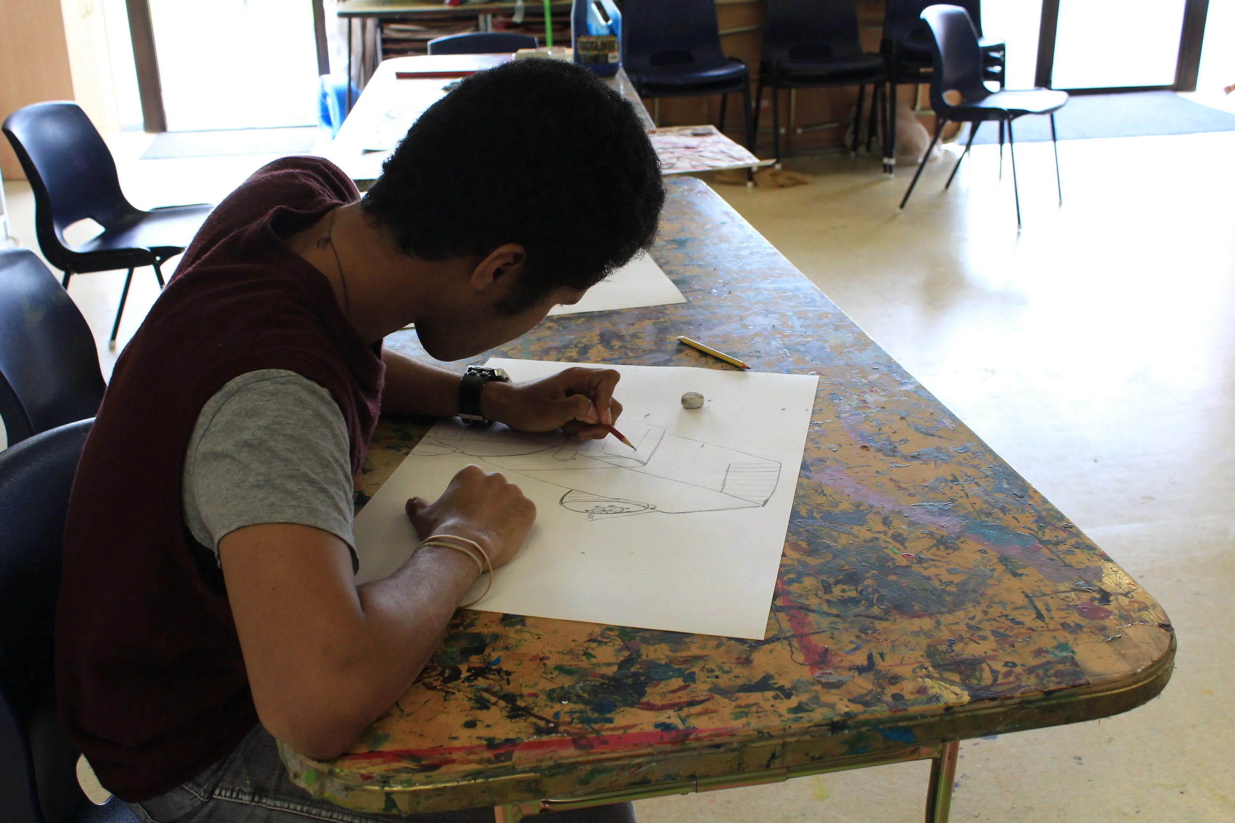 Art therapy allows students to express themselves as a group or as individuals, to forget about their problems and access a whole life they thought they could never find again.