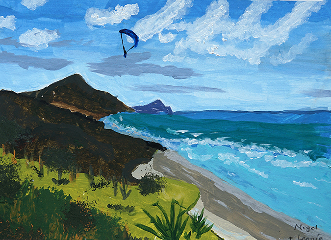 Nigel’s only foray into art was doing a few oil paintings when he and Leonie lived in New Guinea, around 50 years ago. After a reasonably large gap of about 44 years, Nigel is producing a body of wonderful, occasionally nostalgic, and often yearning, poetic works. Leonie, who had never painted before coming to Māpura to assist Nigel in the post-stroke art class, must take credit as well as many of the paintings are a collaborative effort.