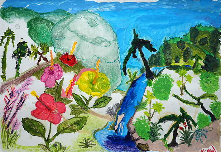 As she had to spend a lot of time in the studio, Nunu was invited to join the class as an artist, and she discovered she could paint and draw. Ululau and Nunu would inspire each other, and they have grown together as artists. They regularly feature in Māpura exhibitions, and their work graces the walls of many homes.